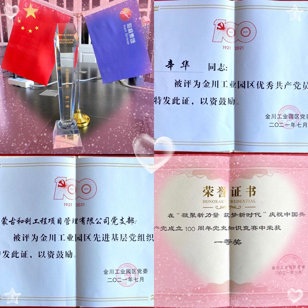在金川黨委的正確領(lǐng)導(dǎo)下,和利黨支部全體黨員、入黨積極分子共同努力下,獲得金川工業(yè)園區(qū)舉辦的慶祝黨建100周年知識競賽第一名、優(yōu)秀共產(chǎn)黨員稱號,榮獲“先進(jìn)基層黨組織”等榮譽(yù)。