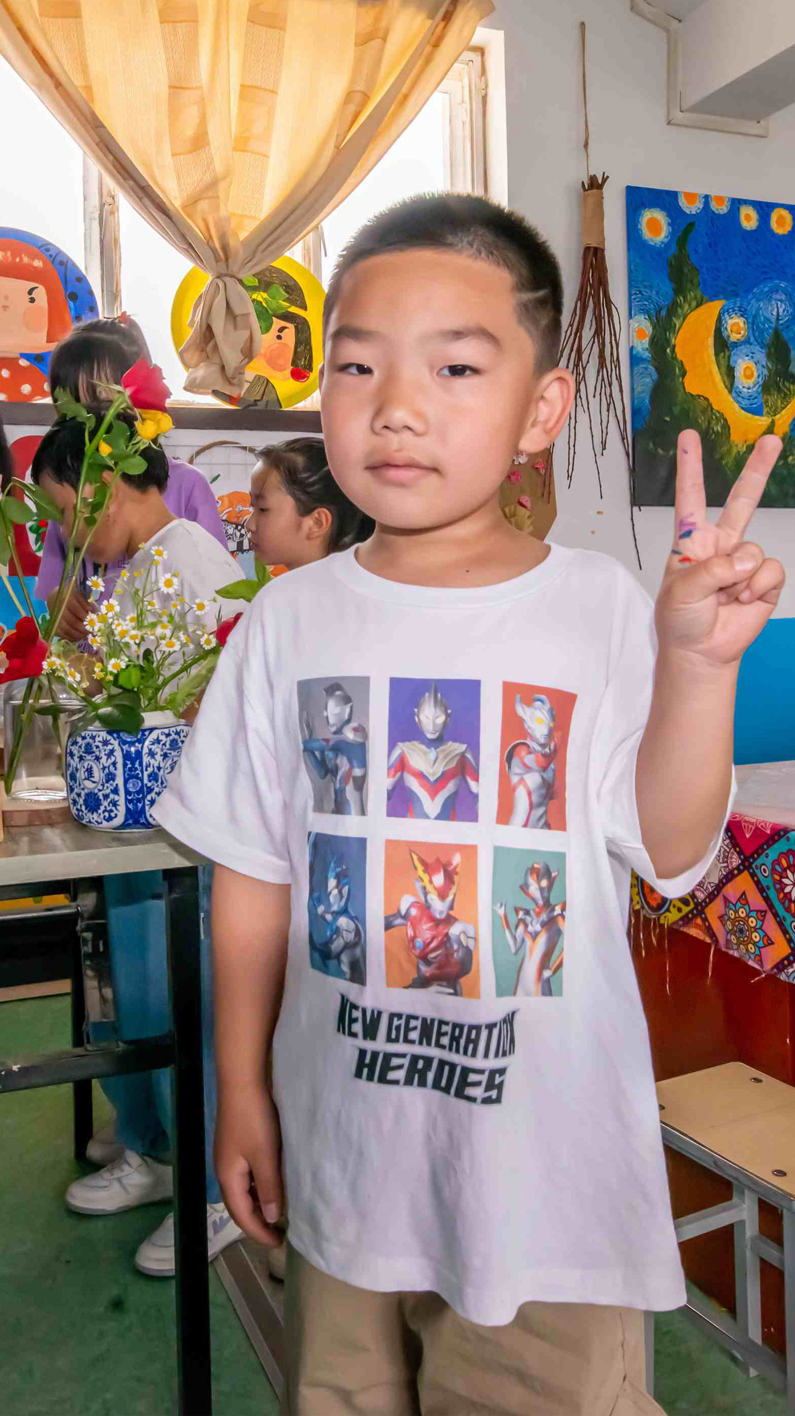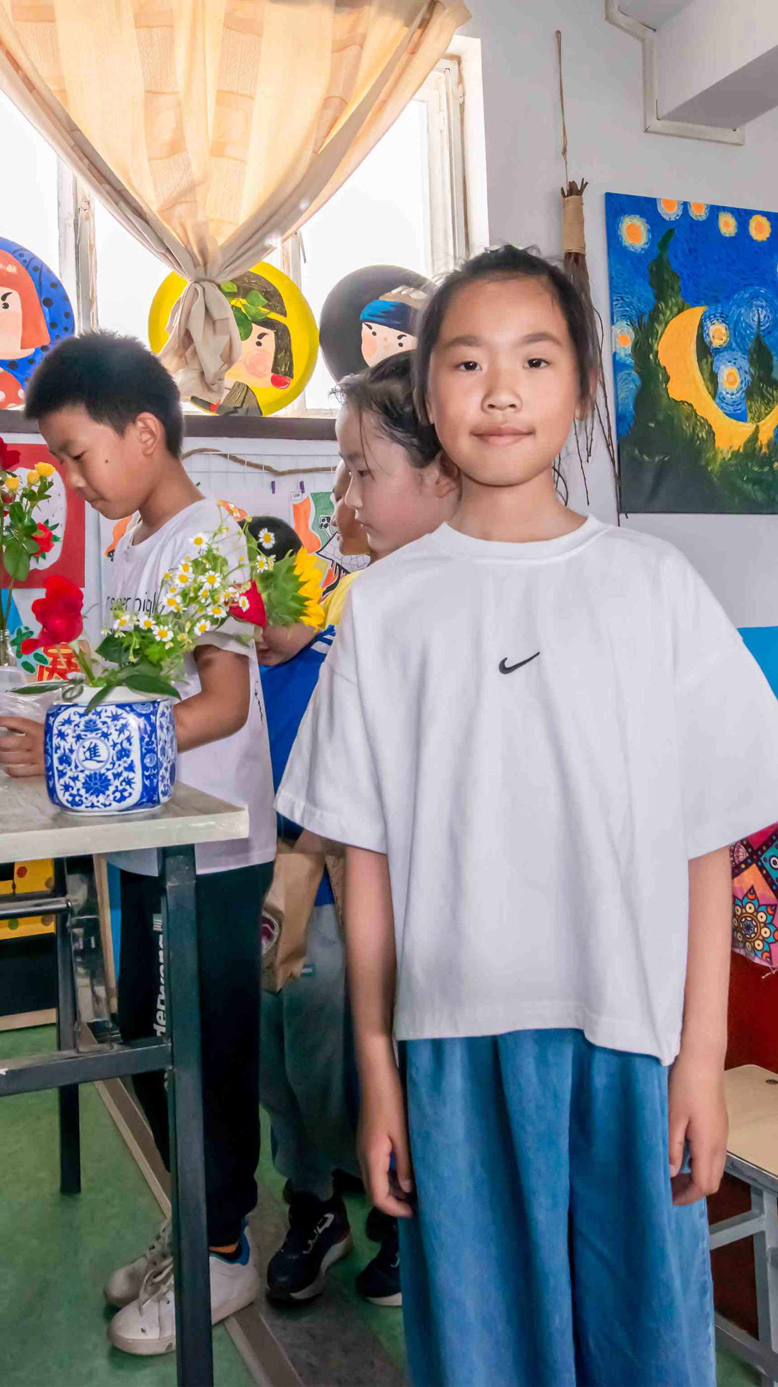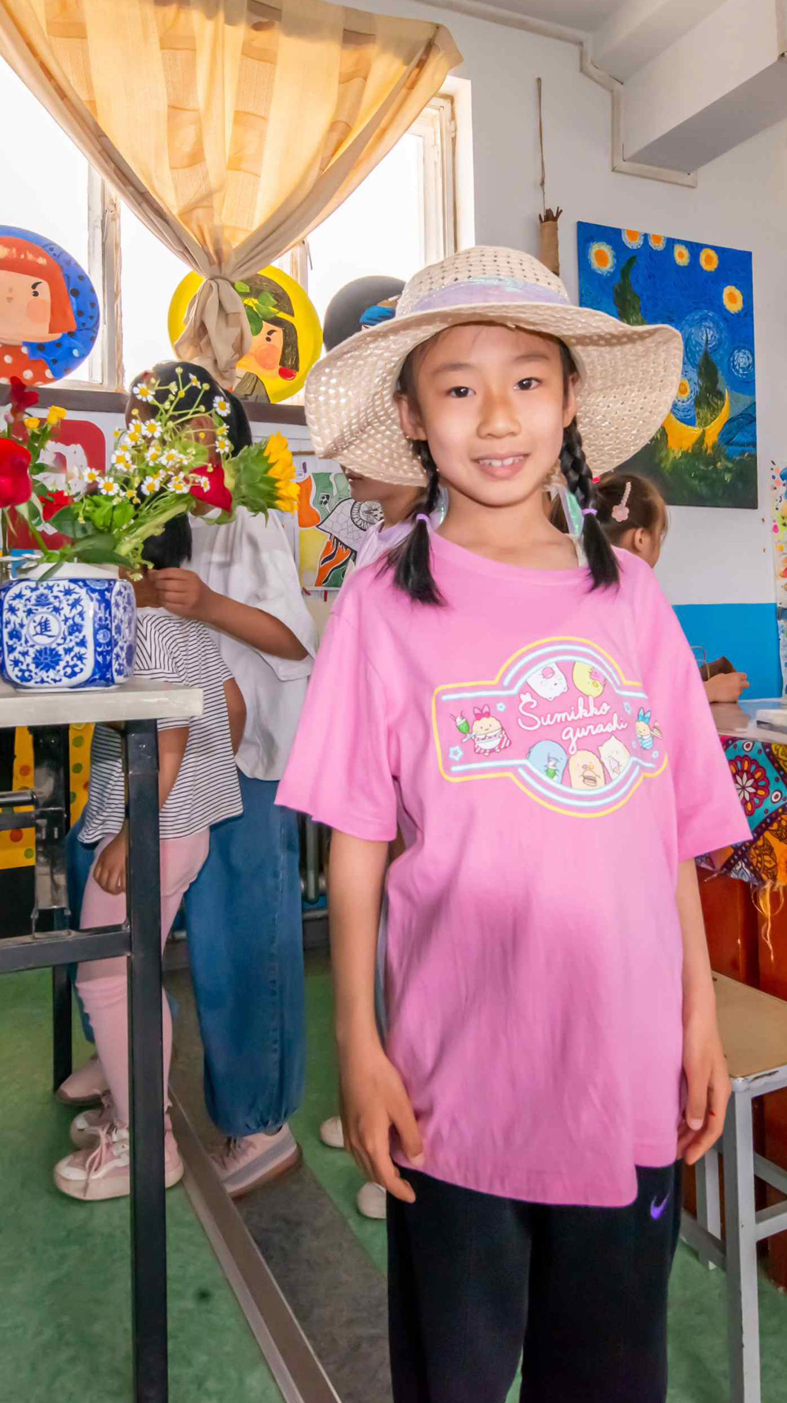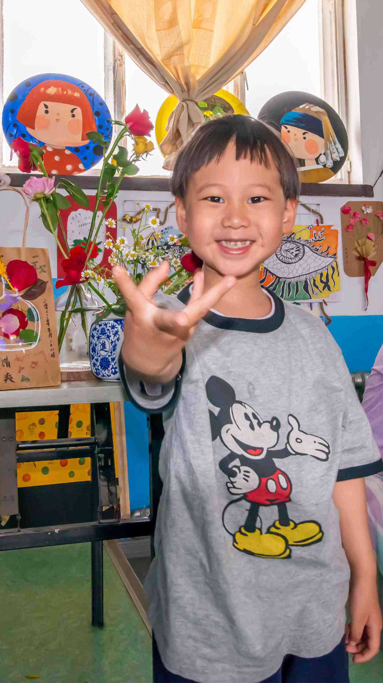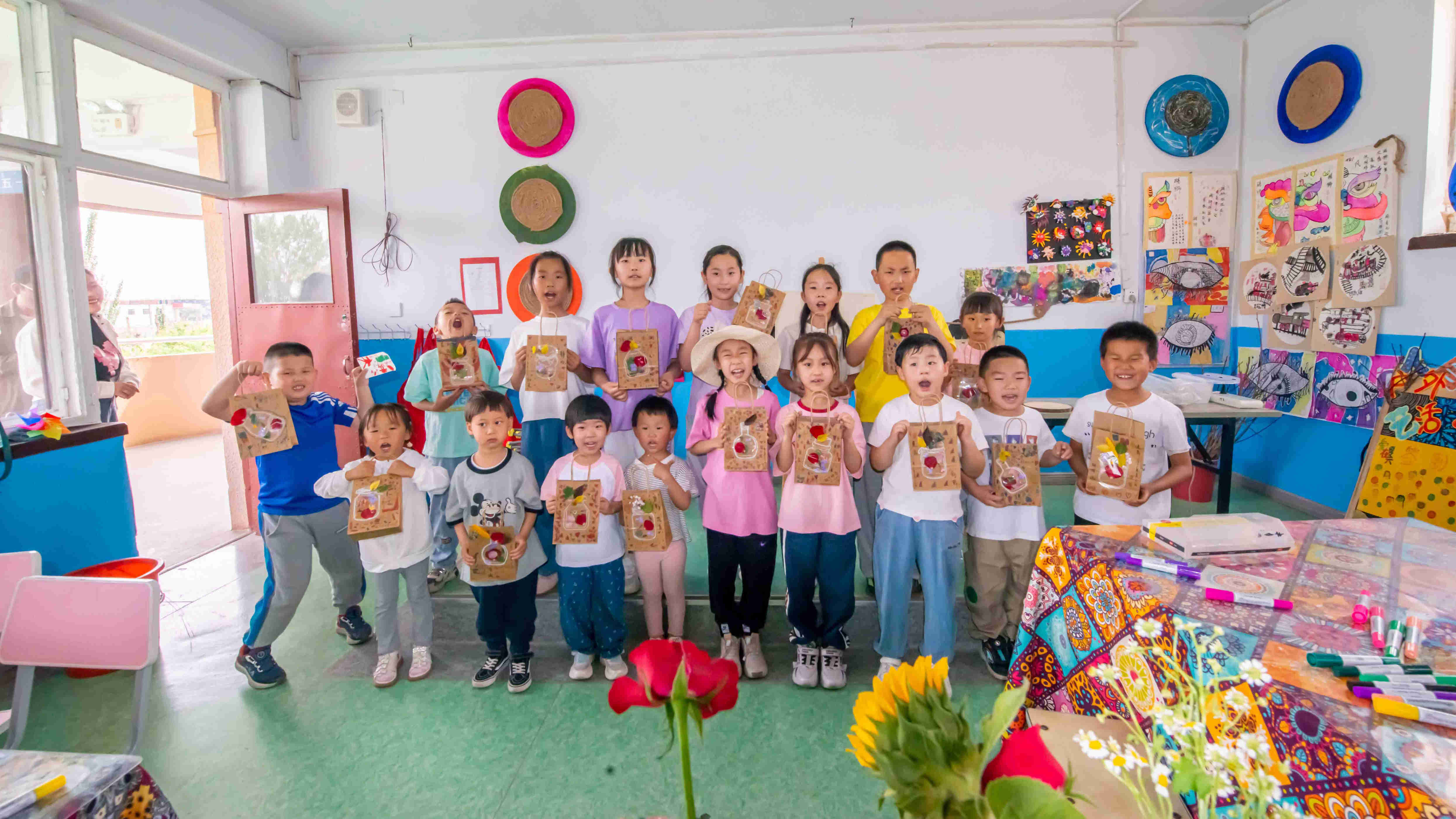手提袋創(chuàng)意裝飾畫課程結(jié)束后,每一位孩子都與自己設(shè)計的作品合影留念,在此環(huán)節(jié)中,每一個孩子都感受到了繪畫制作的樂趣。