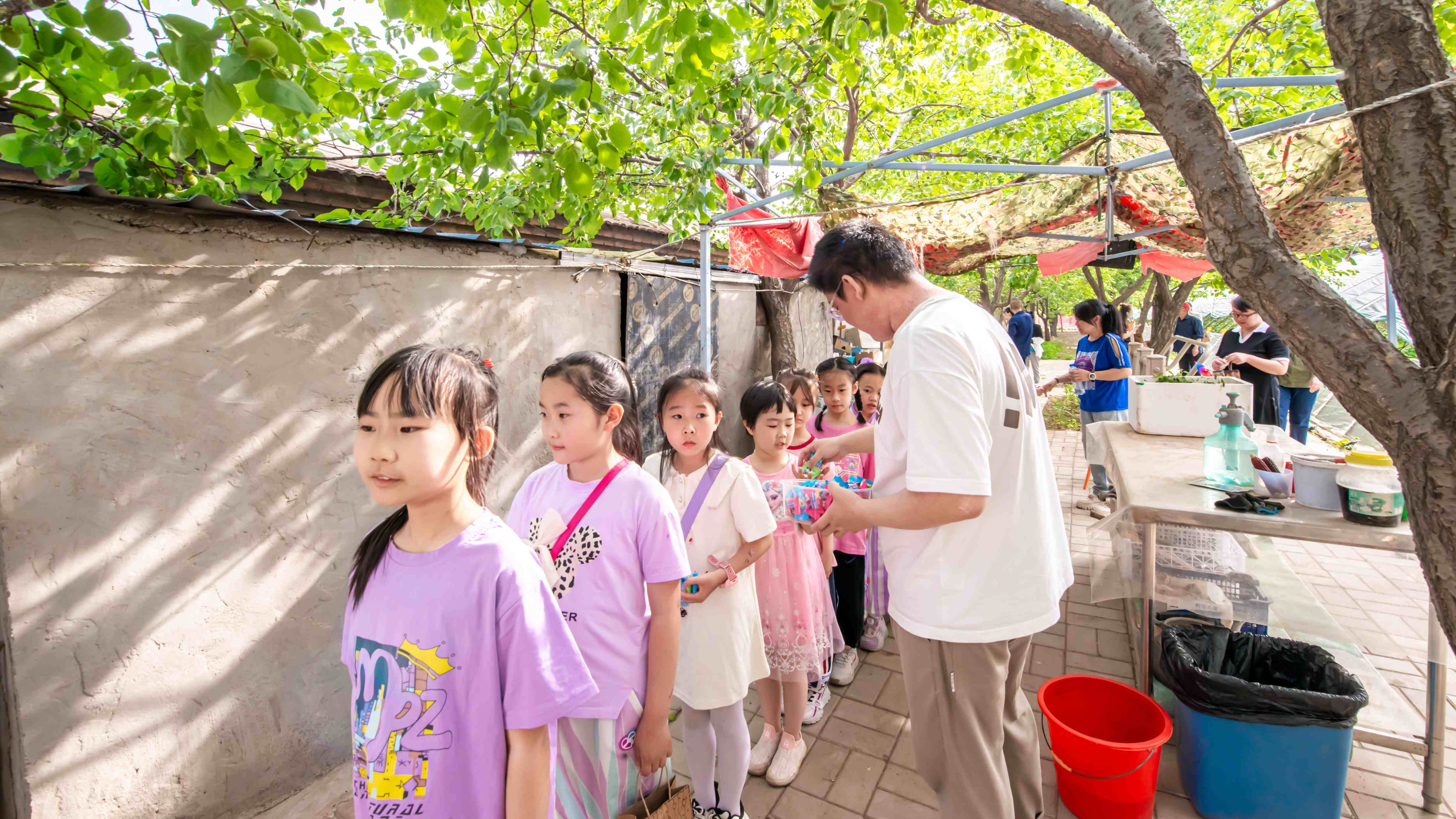 趣味活動結(jié)束后,大家來到室外,開啟活動第二趴—勞動之旅。