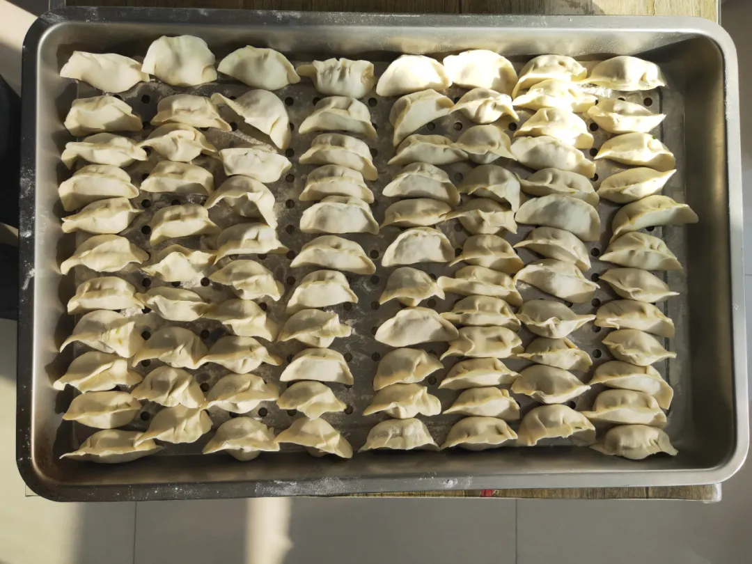 公司食堂提前準(zhǔn)備好了三種餃子餡、備好包餃子的各種工具,迎接報名參與的員工的到來?;顒拥么蛄烁鞑块T領(lǐng)導(dǎo)的大力支持,紛紛派來代表參與活動,別看平時大家都是鍵盤手、鼠標(biāo)手、包起餃子也不含糊,齊心協(xié)力、和面、搟皮、捏褶的,動作堪比專業(yè)的面點師。很快1000多個餃子整齊的排在餐盤上。