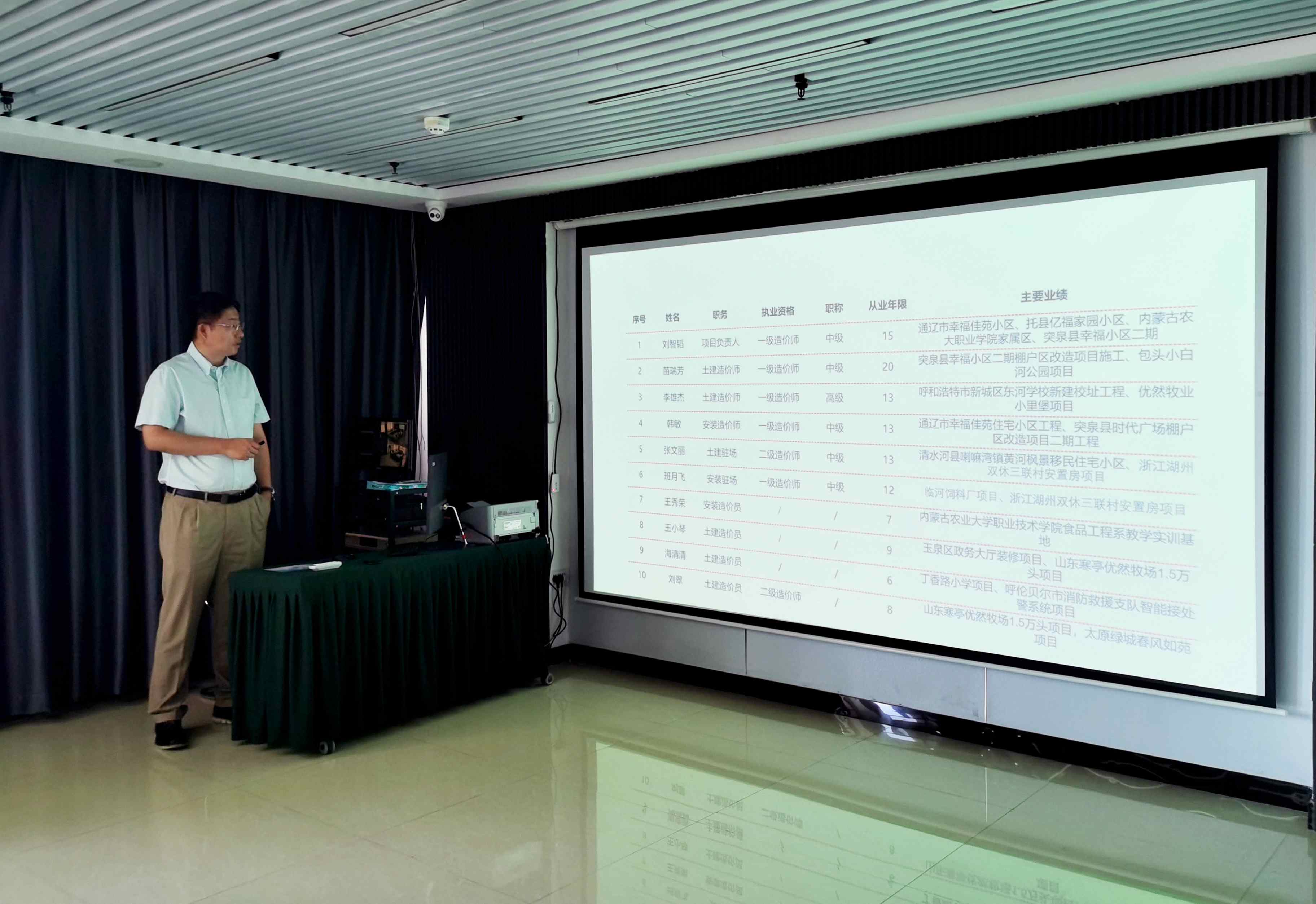 首先,和利項目管理公司造價部經(jīng)理劉智韜分別介紹派駐兩項目造價人員的基本情況(含工作經(jīng)歷、執(zhí)業(yè)資格取得情況等)、工程量清單、最高投標限價成果文件編制情況,并說明接下來的工作計劃和節(jié)點目標。