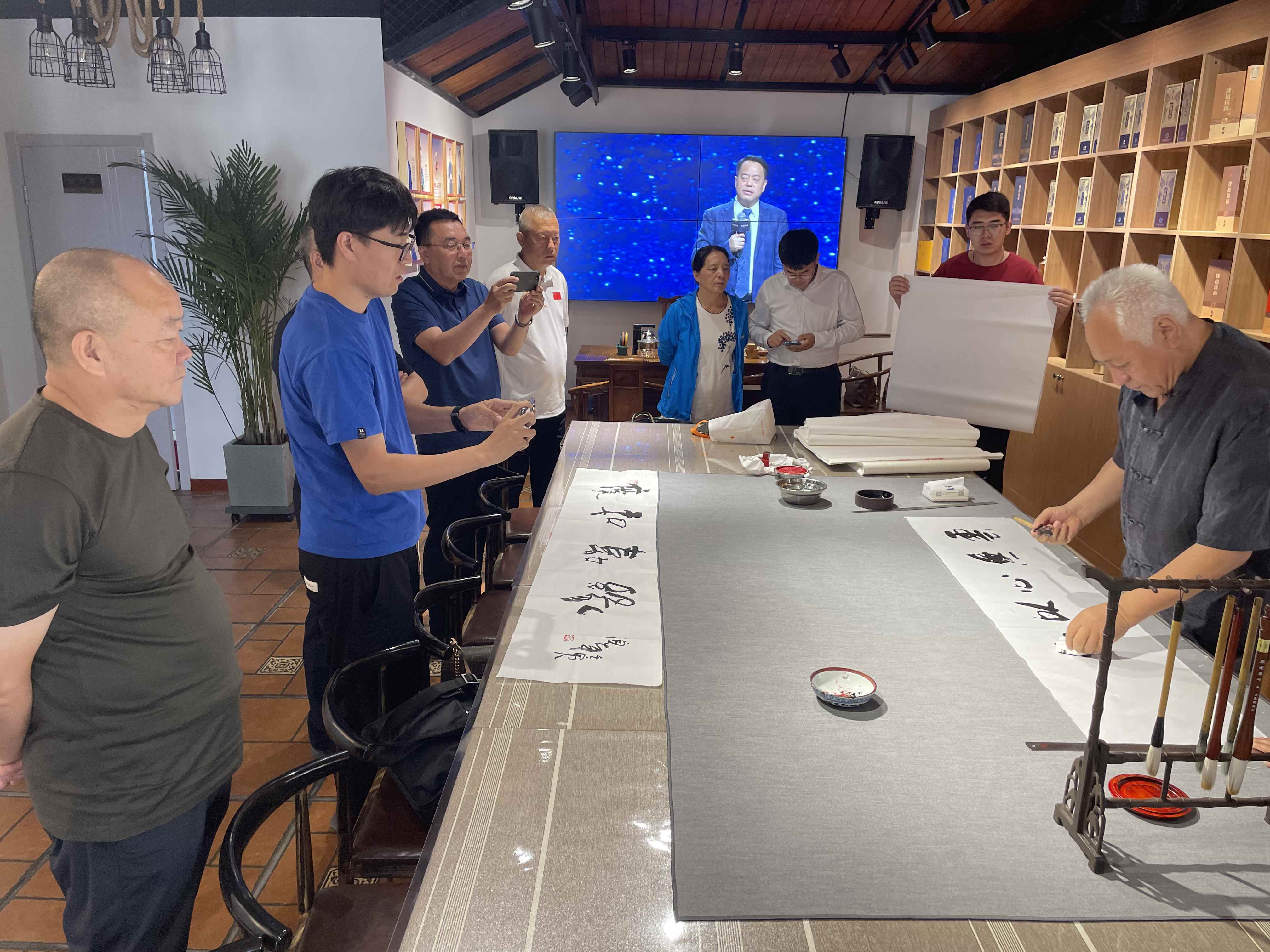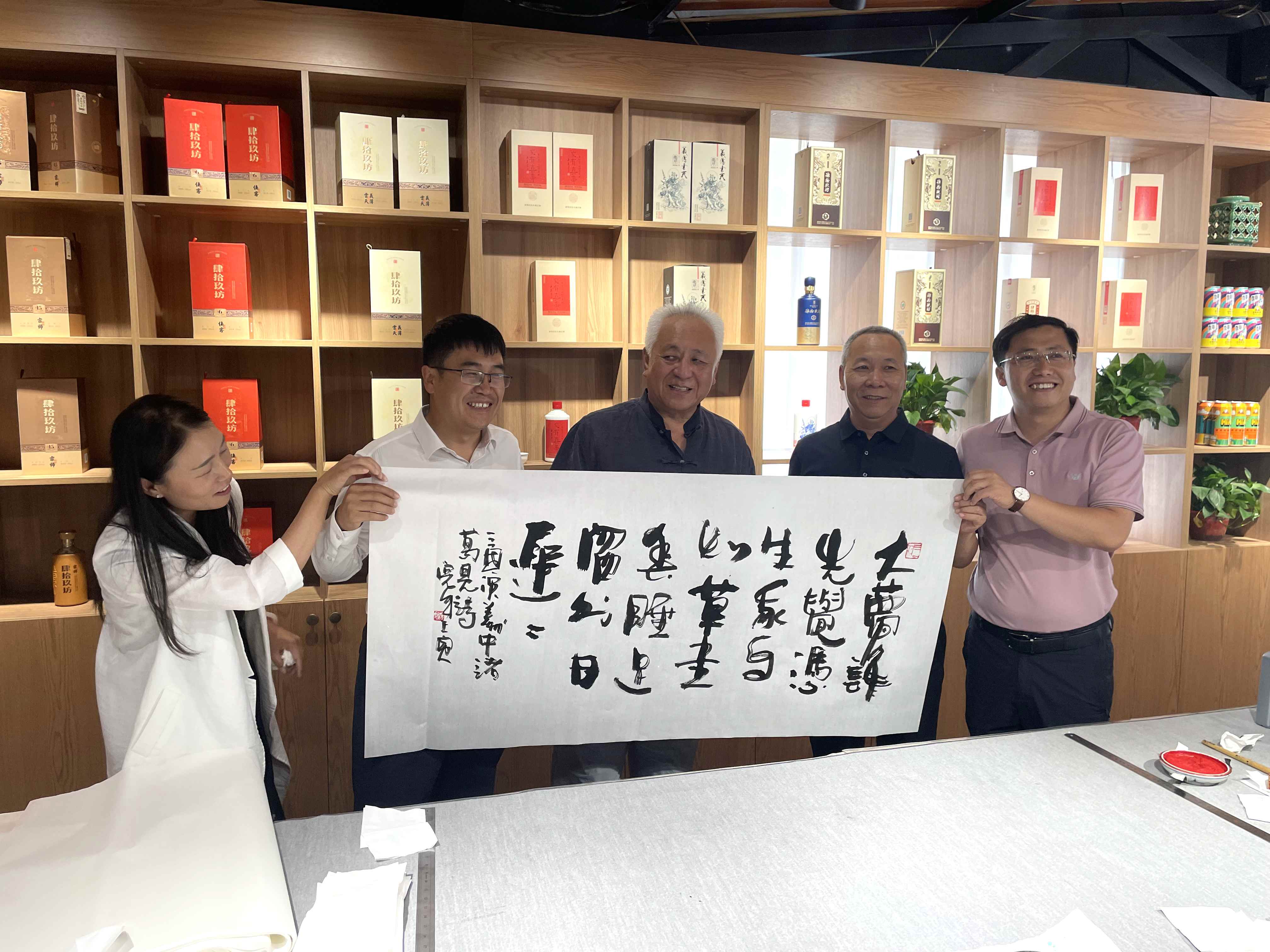 會(huì)后,在集團(tuán)楊金光董事長(zhǎng)一行陪同下,員培斌處長(zhǎng)、趙曉峰會(huì)長(zhǎng)(院長(zhǎng))等一行領(lǐng)導(dǎo)至集團(tuán)交流中心—廣和嘉緣參觀交流。模范退役軍人、著名書法家常永剛顧問(wèn)為和利集團(tuán)題字勉勵(lì)。